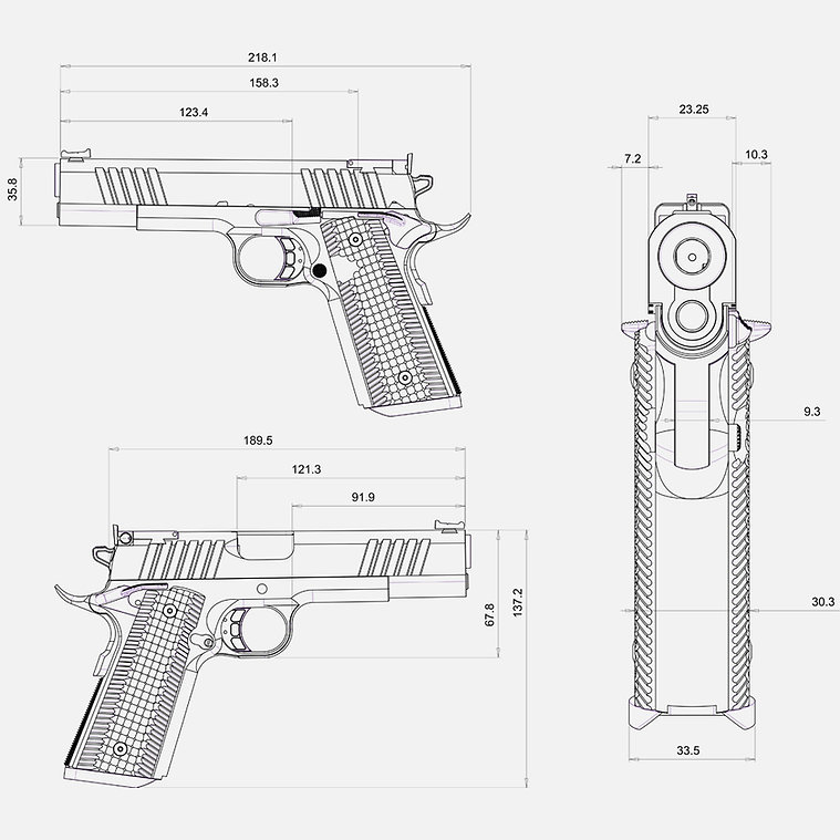 • Polyvalence: Disponible en .45 ACP et 9x19mm pour s’adapter aux préférences de chaque tireur.